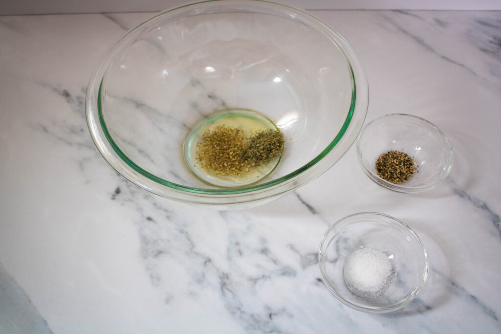 2. Add the olive oil and seasonings to a medium-sized bowl, and stir to mix together.