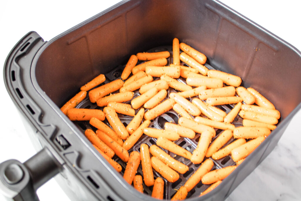4. Add carrots in a single layer to the air fryer basket, and air fry for 15-18 minutes, tossing the basket halfway through cooking.
