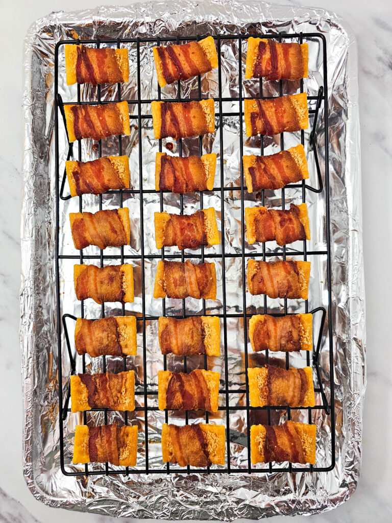 6. Allow the bacon-wrapped crackers to cool for 5-10 minutes, then enjoy!