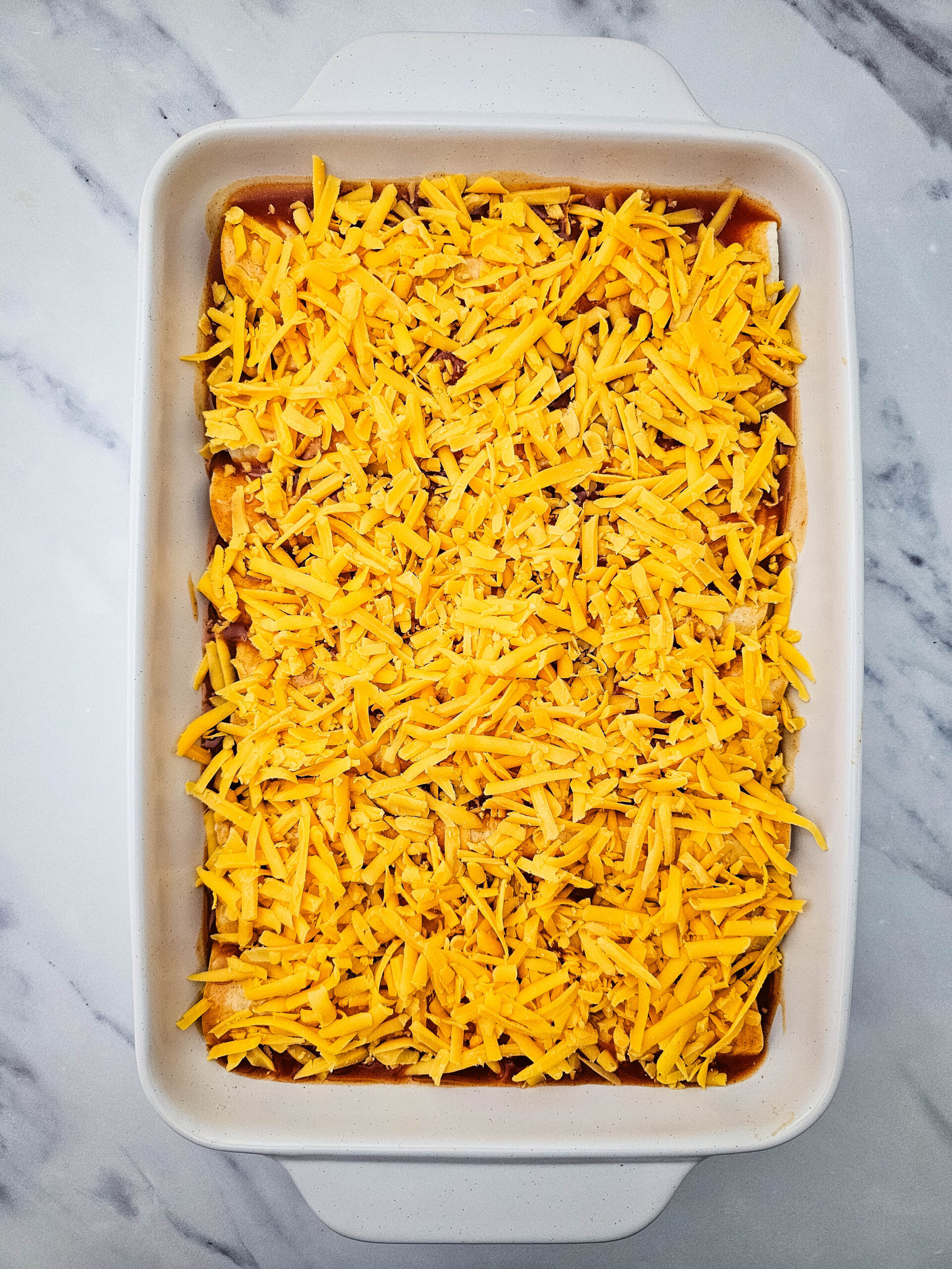 - Shred chicken finely: Makes Cheesy Chicken Enchiladas easier to roll.