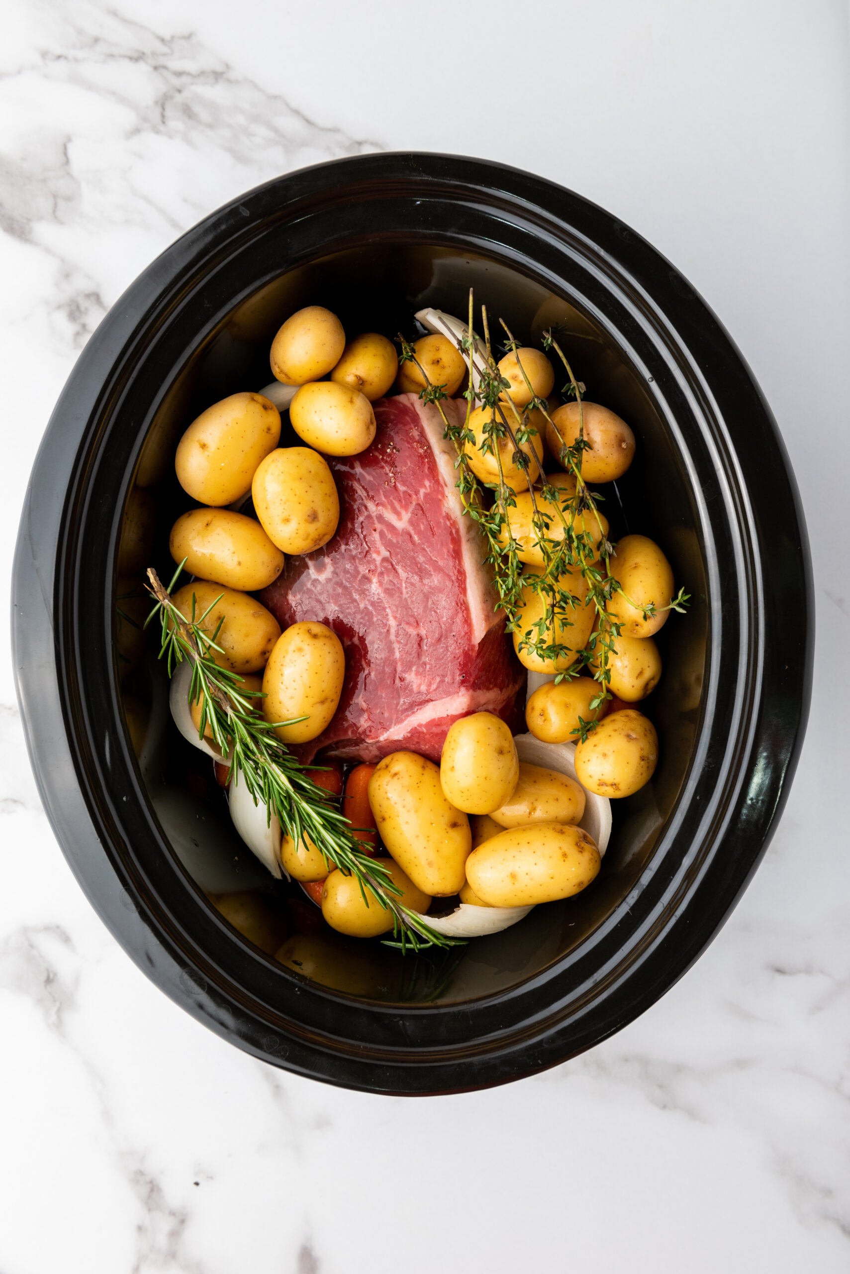 Crockpot Slow Cooker Rump Roast is a tender, slow-cooked beef dinner with potatoes, carrots, and herbs for an easy comforting meal.