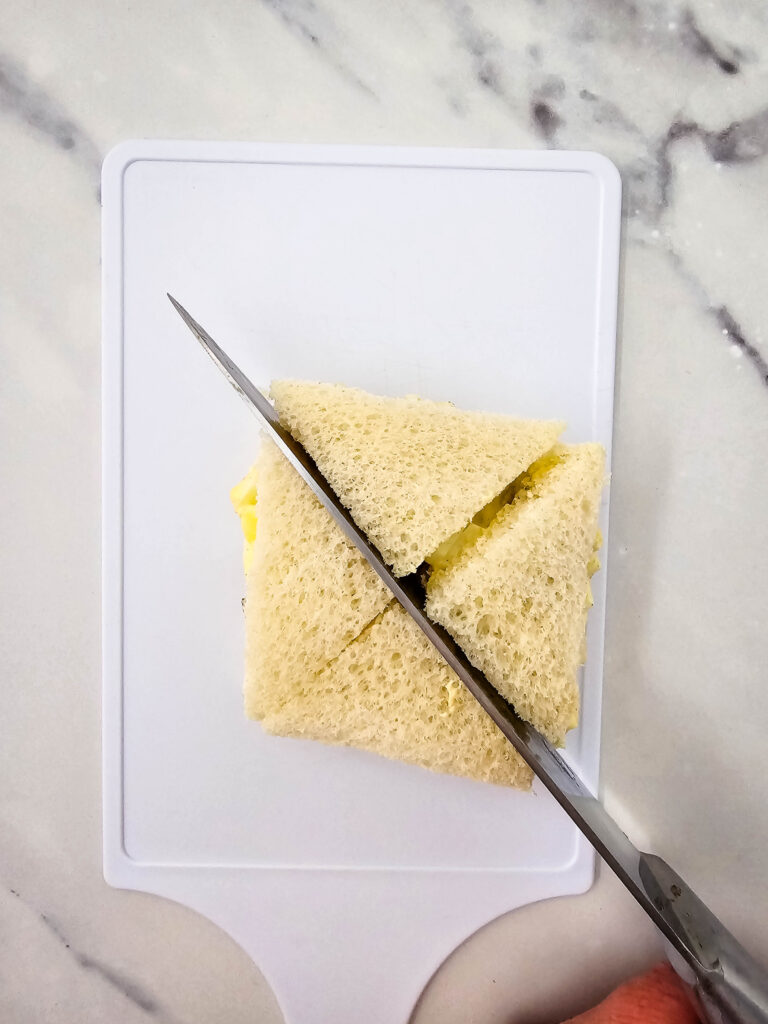 - Cut diagonally into 4 pieces.