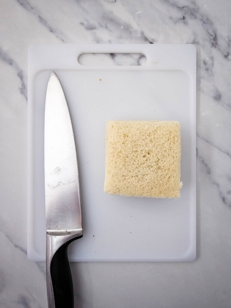 - Cut the crust off all of the slices of bread.