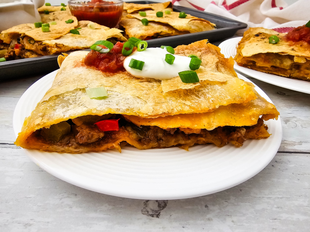 These Sheet Pan Tex-Mex Quesadillas are a crispy, cheesy oven-baked meal made with ground beef, peppers, and tortillas—perfect for easy dinners or entertaining.