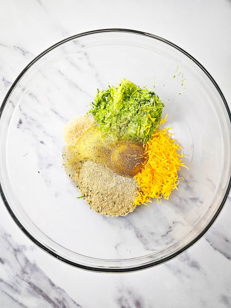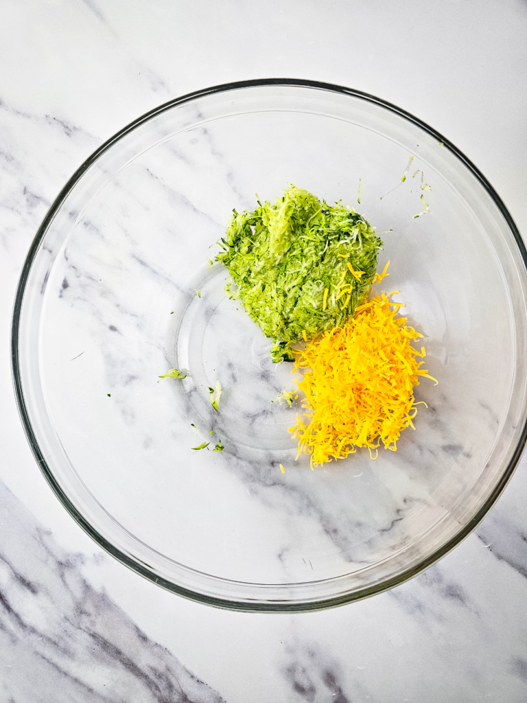 - Grate the zucchini, then ring out the excess water using a clean towel or layers of paper towel.